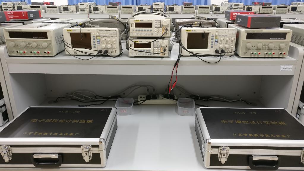 实验室使用面积为144平方米,设备总价值约35.67万元。实验室主要设备有电子课程设计实验箱,数字示波器,函数信号发生器等仪器设备,合计121台/套。实验室主要开设的实验有:晶体管放大电路指标测试、模拟运算电路指标测试、放大电路频率特性测量、负反馈对放大器特性影响测试、功率放大器指标测试、有源滤波器指标参数测量等模拟电子技术实验和组合逻辑电路实现与调试、时序逻辑电路实现与调试、脉冲产生电路设计与调试等数字电路实验,可一次接纳40名学生,完成1人1组实验。