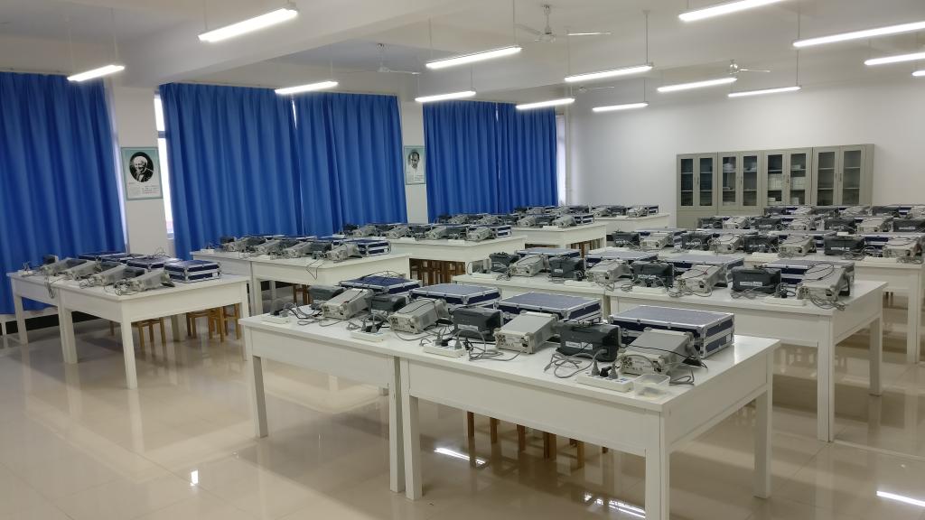 实验室使用面积为144平方米,设备总价值约43.26万元。实验室主要设备有信号发生器,双踪示波器等仪器设备,合计42台/套。实验室主要开设的实验有:高频小信号调谐放大器实验;三点式正弦波振荡器实验;丙类功放实验;模拟调幅及解调实验;模拟调频及解调实验;模拟锁相环实验等,可一次接纳42名学生,完成1人1组实验。