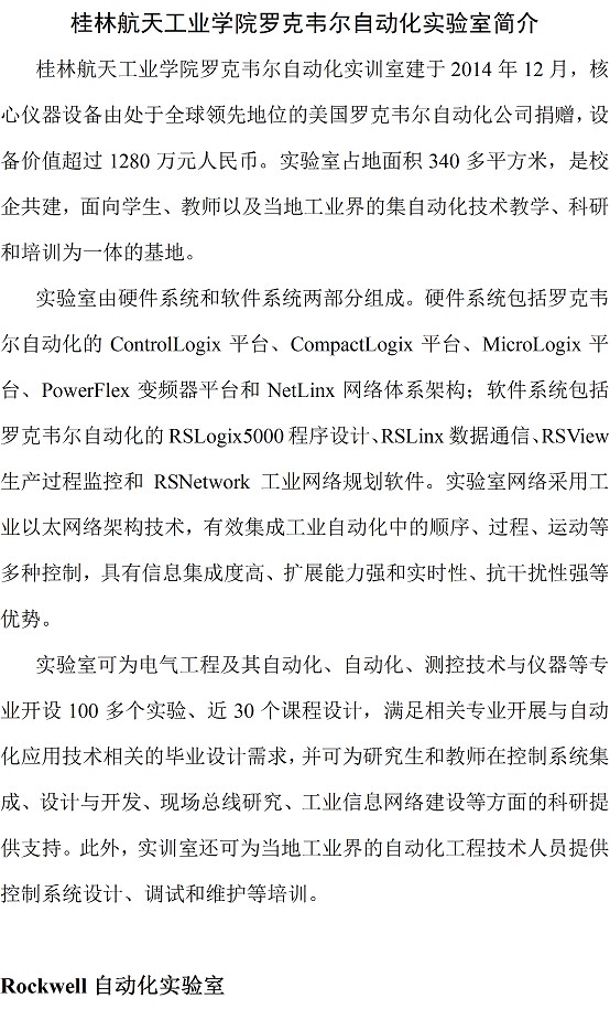 罗克韦尔--桂林航天工业学院实验室