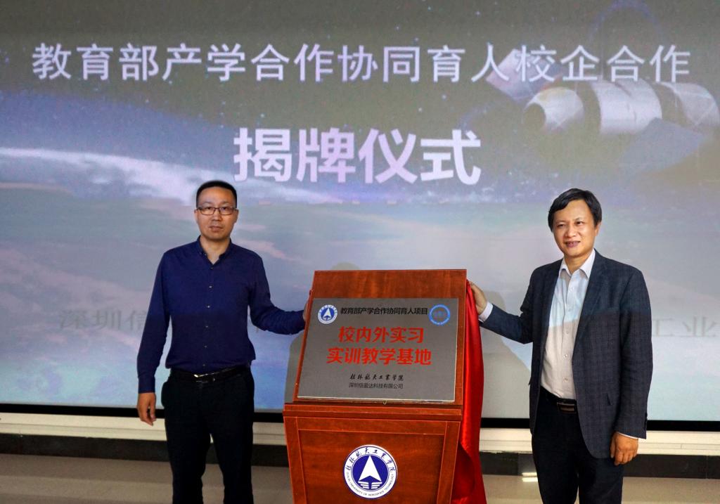 仪式上,李智副校长首先对出席揭牌仪式的来宾表示热烈的欢迎,并介绍了我校的办学历程和基本情况。我校是广西唯一布局有航空航天类本科专业的普通本科高等院校,学校围绕“应用技术型人才培养”展开人才培养工作,注重校企合作、协同育人。他表示,我校与深圳信盈达科技有限公司共同开展产学合作协同育人项目,将对我校产学合作协同育人机制建设起到促进作用,必将全面提升我校人才培养质量,提高我校科学研究和社会服务水平。